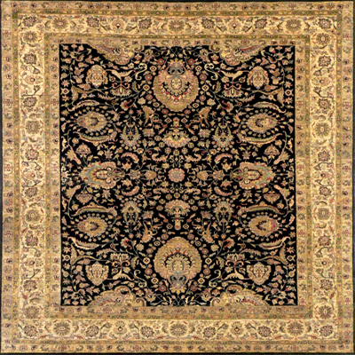 Product Profile of Black/ Gold Coloured Hand Spun Carpet