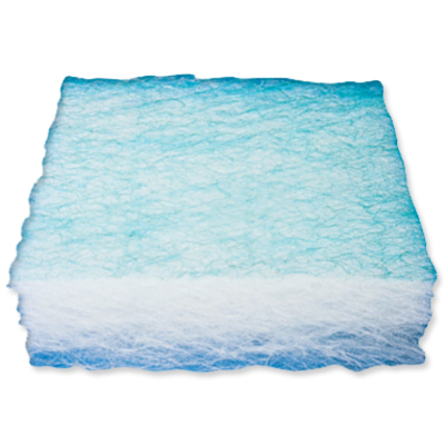 - This pad consists of continuous glass fibres whose diameter becomes smaller and the weave progressively tighter from the air entering side.