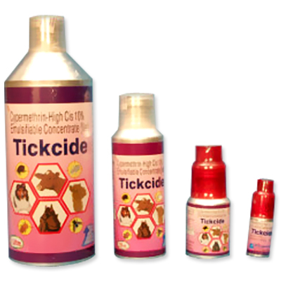 Ectoparasiticide for Livestock Animals is used to control flies, blowfly larvae, biting lice, ticks, head flies, mites, scabies and mange mites in cattle, sheep, goat, horse, camel, poultry, dog etc. The Ectoparasiticide, available under the brand name "TICKCIDE" contains Cypermethrin High Cis in 10% w/v. Brilliant Bio Pharma Limited manufactures Ectoparasiticide for Livestock Animals.