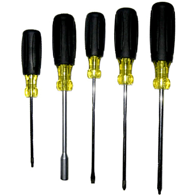 - Contains five screwdrivers.
