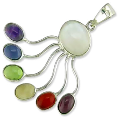 Key Features of Multi Coloured Gemstone Studded Silver Pendant
