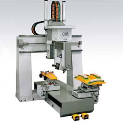Computer Numerical Controlled Machine operates on 1666 mm/ second axis X and 1050 mm/ second axis Y and Z. The Machine is available in a sturdy construction and designed with 6 interpolated axes. The Machine utilizes industrial PC windows as operator interface. Computer Numerical Controlled Machine is provided with 4 pneumatic clamps and vacuum steel arms with squared surface.