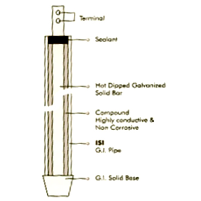 - The bottom is sealed with hot dipped galvanized G.I., solid steel & copper plate and the top is sealed with a cap having ectende electrode.