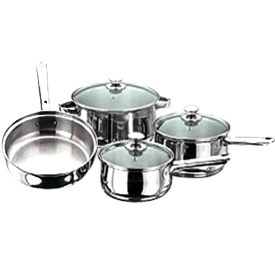 Kitchen Essentials supplies Seven Piece Cookware Set with Glass Lid. Kitchen Essentials manufactures stainless steel kitchenware, houseware, cookware and hotelware products. The Seven Piece Cookware Set with Glass Lid is available in the sizes of 16 / 18 / 24cms. This Cookware Set is provided in round edge, bakelite long - side handles with knobs in various sizes.