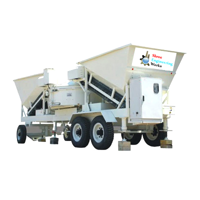 Portable Concrete Machine with Reversible Drum Mixer comes in capacity ranging from 10cum per hour to 25cum per hour and has dimensional accuracy. The Portable Concrete Machine is a mobile plant that is equipped with a reversible drum type mixing unit. The Portable Concrete Machine can be towed easily with a tractor and has a control panel on the chassis making the controlling very easy where the concrete mixing is done in clockwise direction and concrete discharge is in anti-clockwise direction. Portable Concrete Machine with Reversible Drum Mixer requires less space for installations and can be maintained without hassles.
