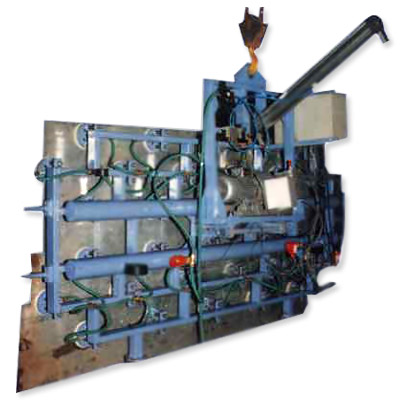 The device incorporates vacuum generators with safety devices, drive units, buffer reservoir, valves, electrical switchgear and other accessories, all supported on a structural frame.